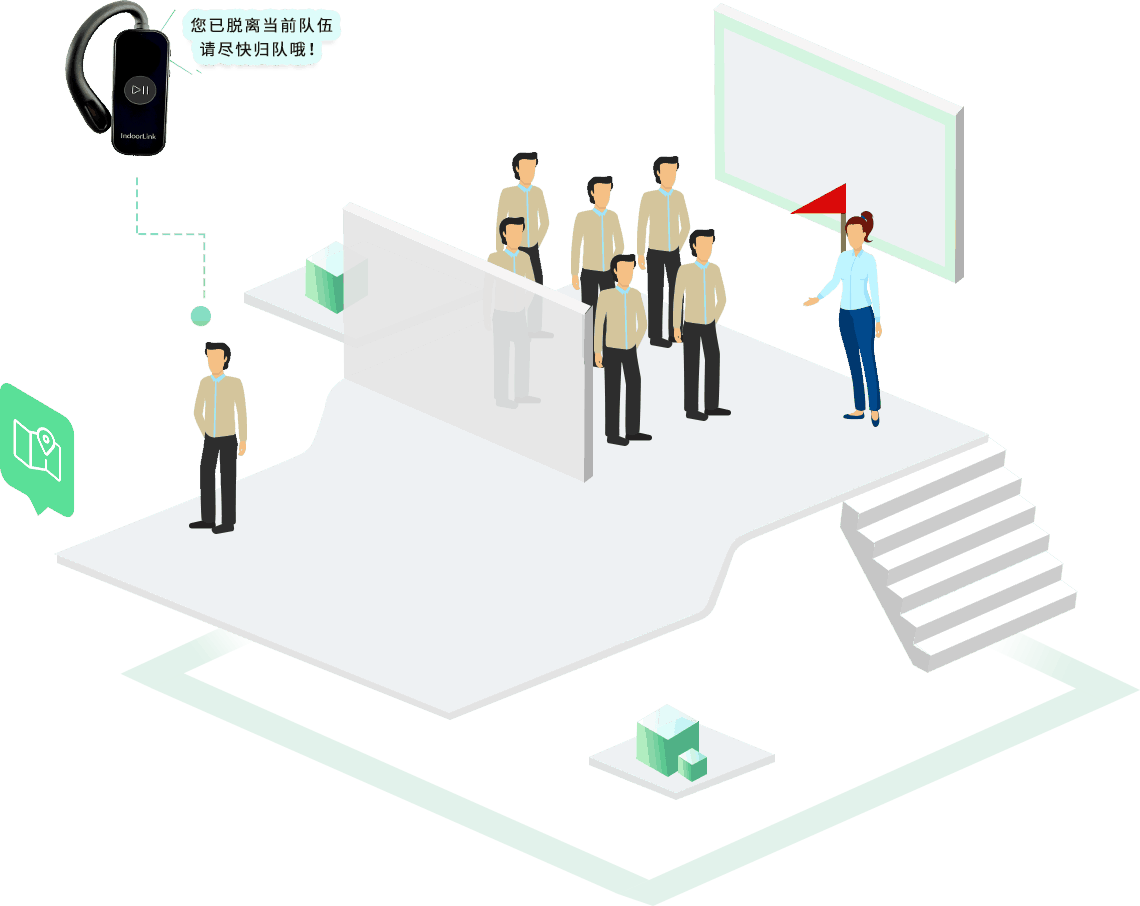 节假日人流高峰期间,当团队成员在观光时不小心与队伍脱离太远,博物馆讲解耳机就会发出警示提醒掉队成员,以预防成员无意中和队伍走失、掉队。